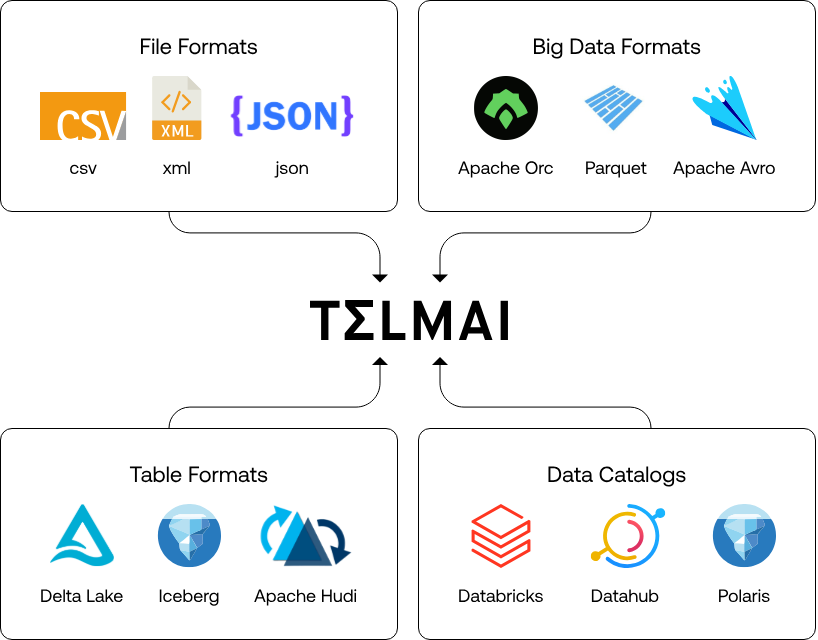 - Cloud-Native Storage Compatibility: Direct compatibility with AWS S3, Azure Data Lake, and Google Cloud Storage allows frameworks to monitor data in place